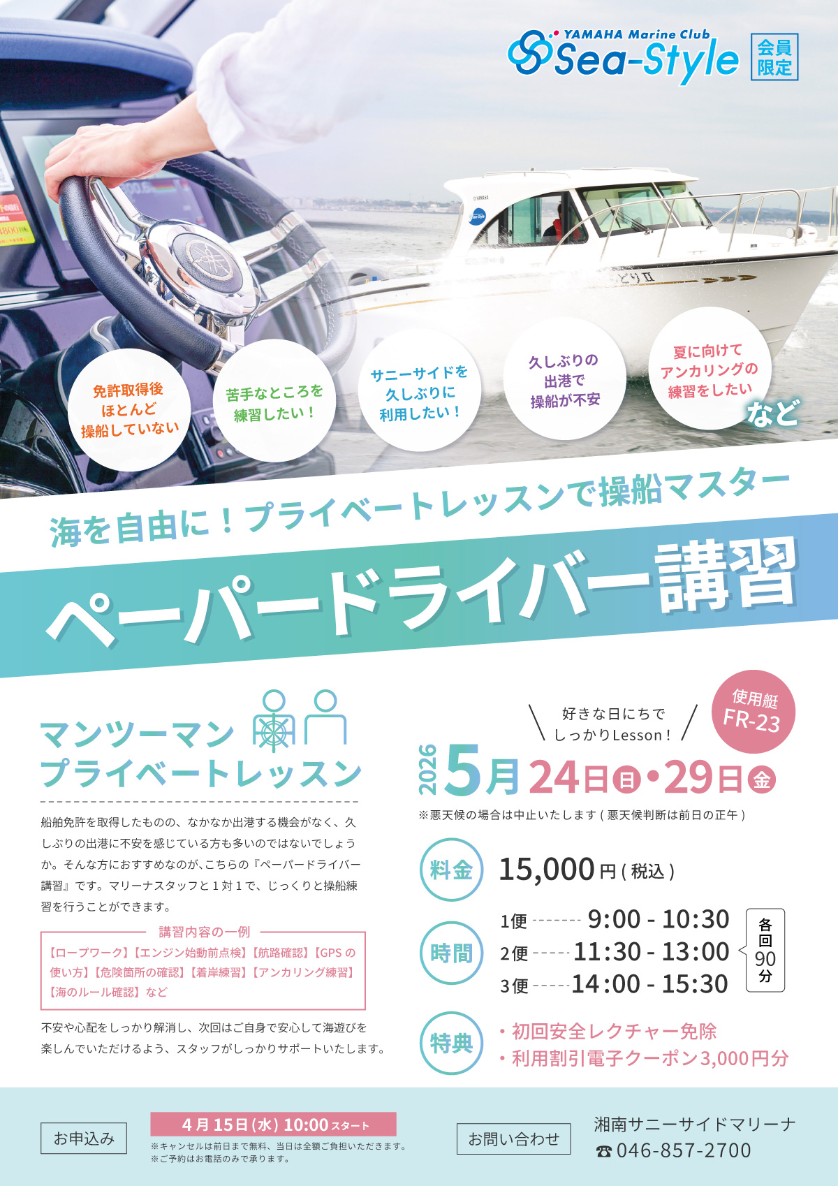 春のデルタマリンフェア!脱!ペーパードライバー マンツーマン離着岸レッスン 開催のご案内