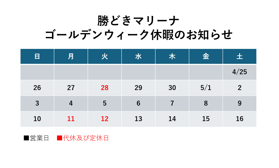 当マリーナを初めてご利用されるみなさまへ ■勝どきマリーナのレンタルエリアは魅力溢れる東京港がメインとなっておりますが、水路の入り組んだ地形と交通量の多い区域でもあります。 ■安全に楽しくレンタルボートをご利用頂くために安全レクチャー(有料 約3時間)の受講を義務付けており、受講修了後からレンタルのご予約が可能になります。 ■開催は、毎月定期日程で開催(予約・定員制)となります。 当マリーナホームページにて日程をご案内しております。 こちらをご確認下さい。→ https://kachidoki-marina.com/safety-lecture/ ■当マリーナには、駐車場(バイク含む)がございません。近くのコインパーキングで自己管理してください。 また、自転車の場合止める場所に限りがございます。事前にご相談くださいませ。 または、メール又はお電話にてお気軽にお問い合わせ下さい。 ■お問い合せ先 勝どきマリーナ マリン部 TEL 03-3531-7833 info@kachidoki-marina.com お問い合わせ対応:9:30~18:00までとさせて頂きます。 |