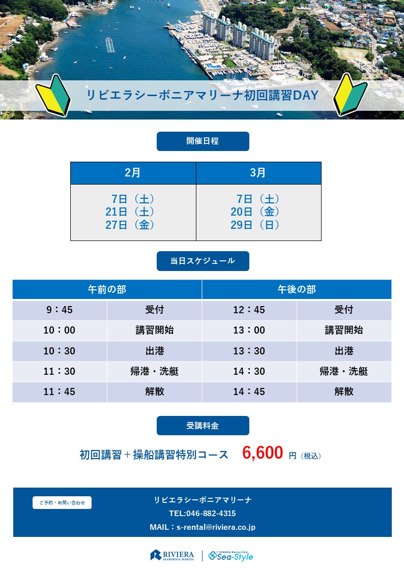ご利用のマリーナやクラブ艇により、ご利用前に受講が必要な講習がございます。お電話またはWEB予約の上、ご受講をお願いいたします。